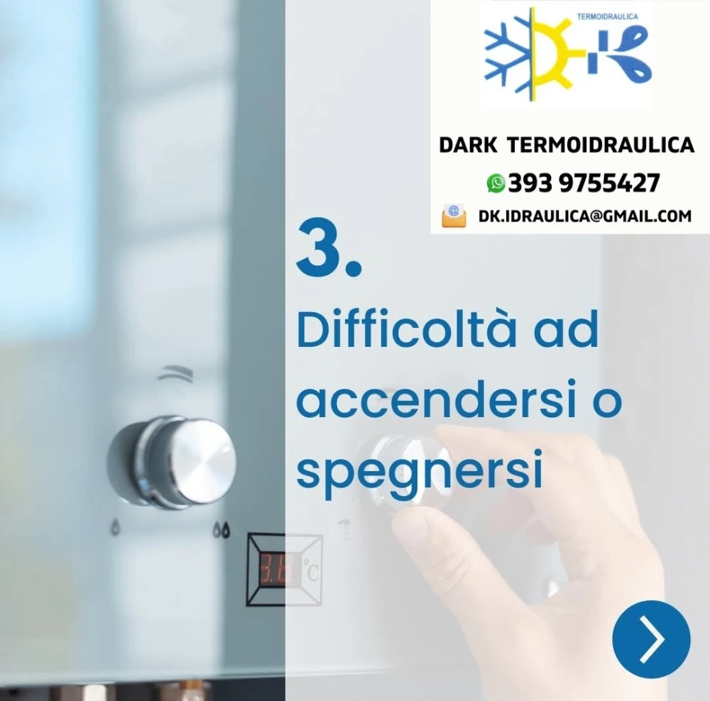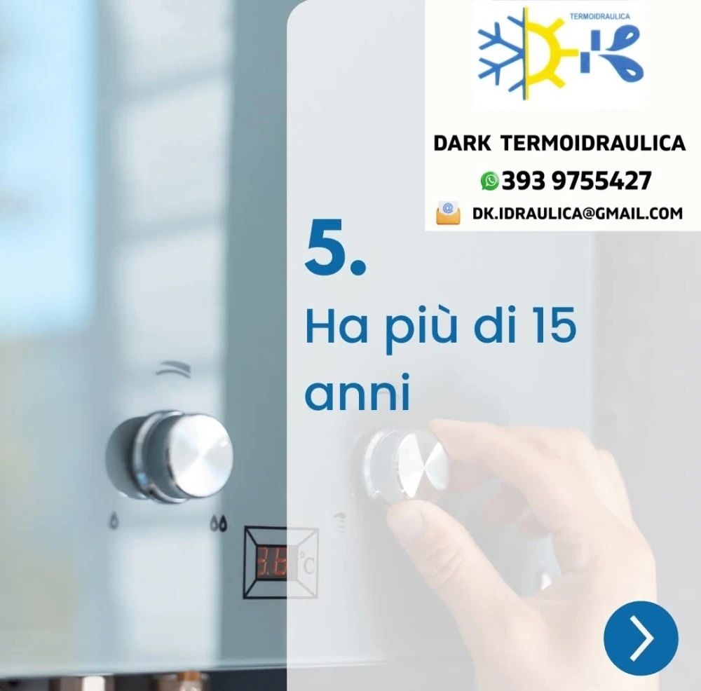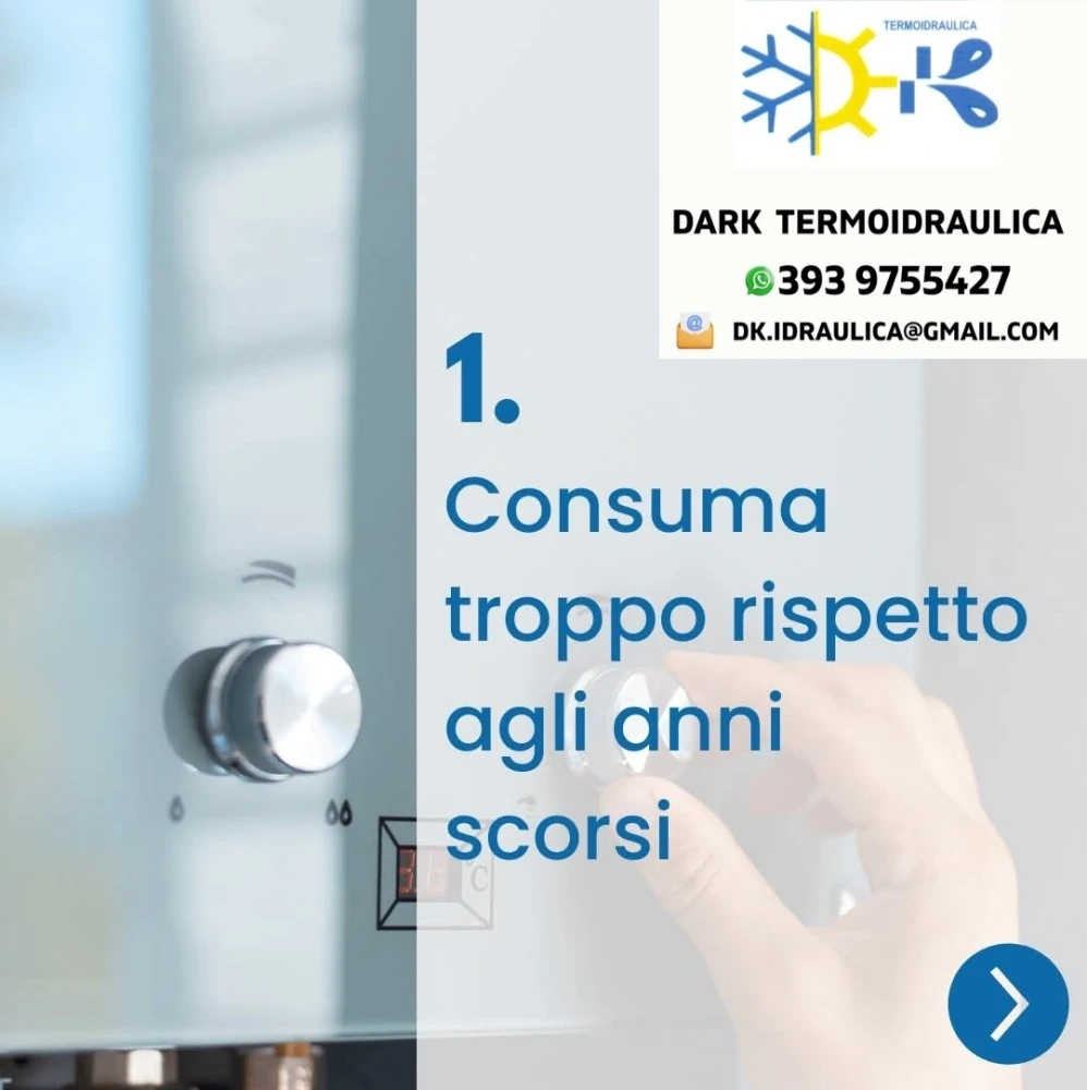 Consuma troppo rispetto agli anni scorsi; Rumori strani durante il funzionamento; Difficoltà ad accendersi o a spegnersi; Perdite d'acqua o pressione ballerina; Ha piu' di 15 anni. Se riconosci uno di questi segnali, è l'ora di valutare la sostituzione della tua caldaia.