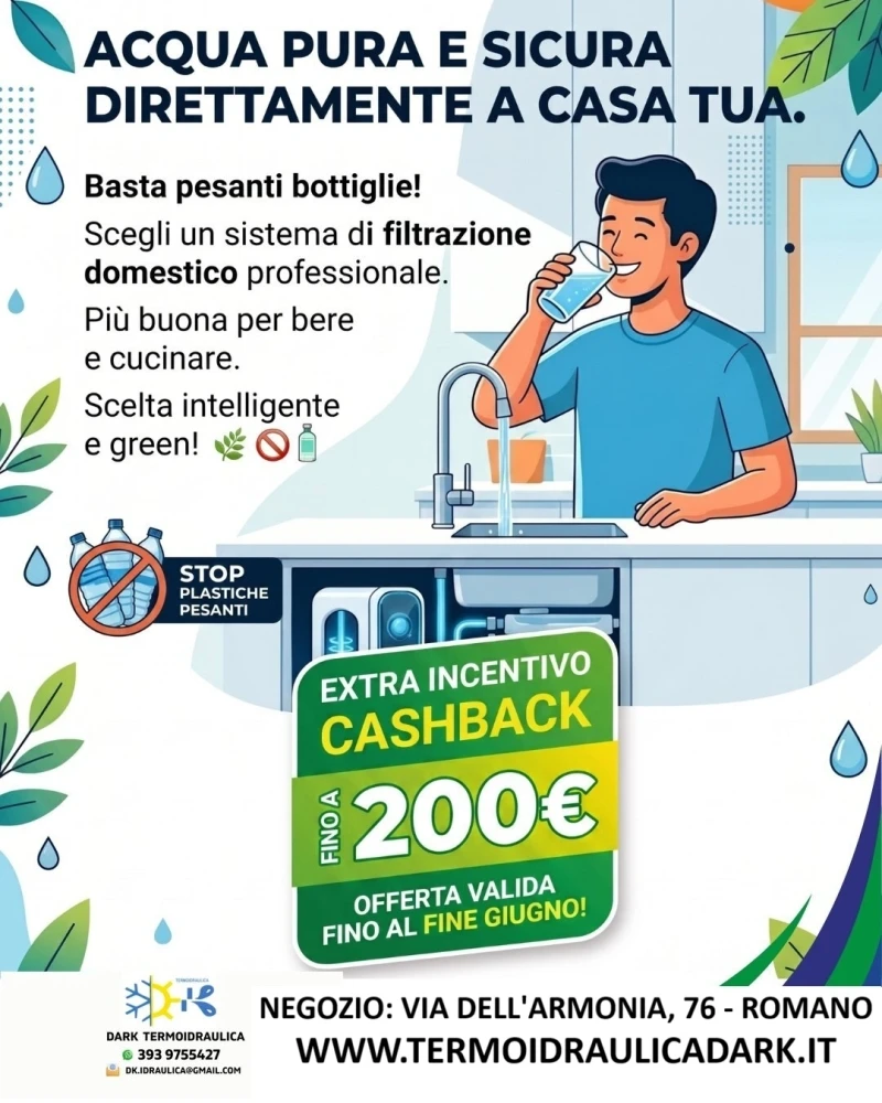 Con un sistema di filtrazione domestico professionale l'acqua del rubinetto diventa non solo piu' buona e sicura per bere e cucinare, ma anche piu' comoda.
