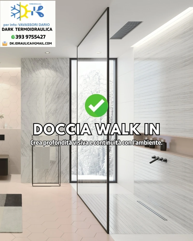 SI a box doccia walk-in: crea profondità visiva e continuità con l'ambiente.