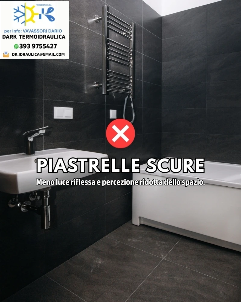 NO a piastrelle scure: meno luce riflessa e percezione ridotta dello spazio
