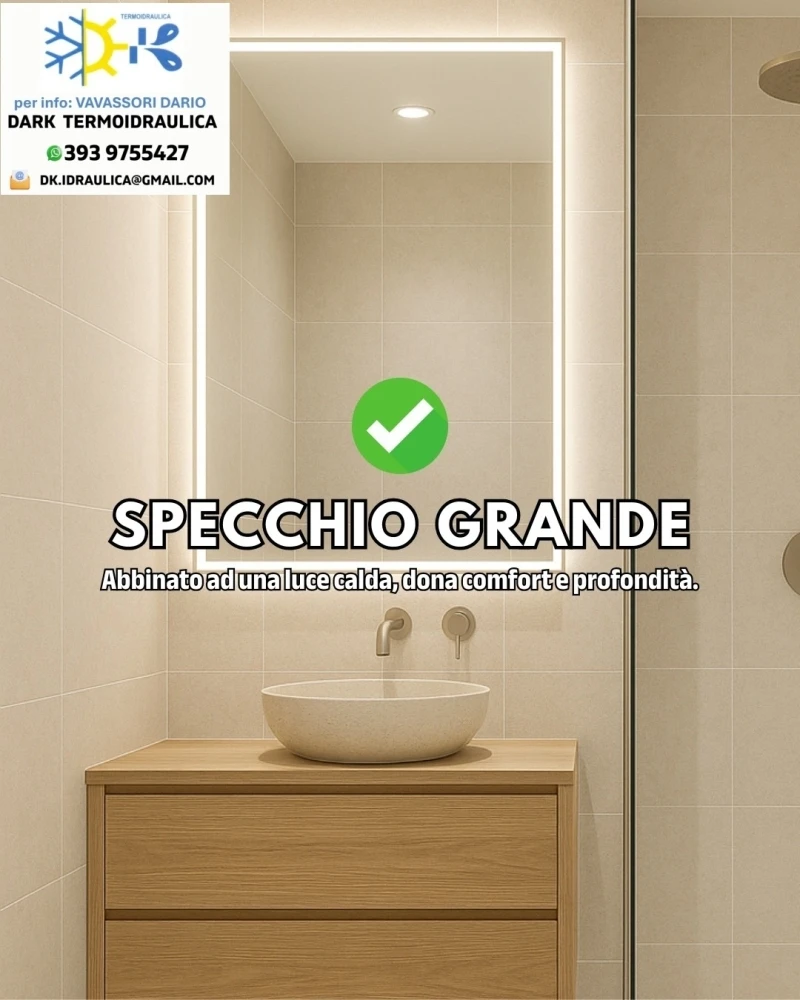 SI a specchio grande: abbainato ad una luce calda, dona comfort e profondità.