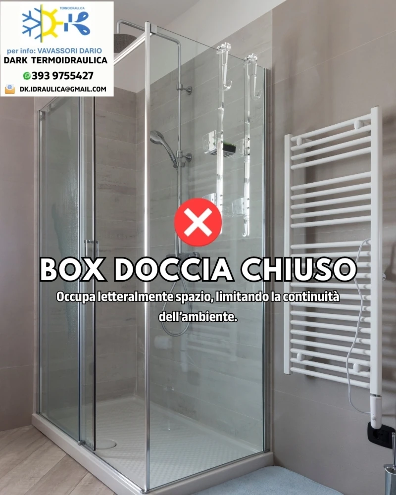 NO a box doccia chiuso: occupa letteralmente lo spazio, limitando la continuità dell'ambiente