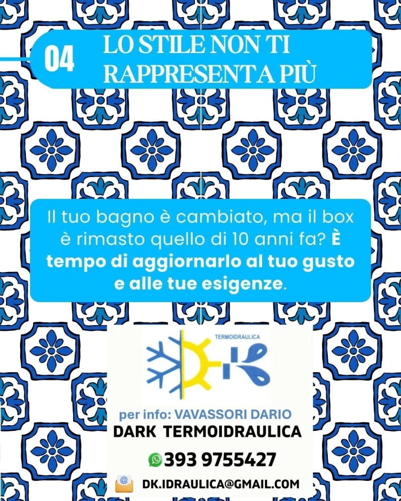 - Lo stile non ti rappresenta piu' ... il tuo bagno è cambiato, ma il box è rimasto quello di 10 anni fa? E' tempo di aggiornarlo al tuo gusto e alle tue esigenze.
