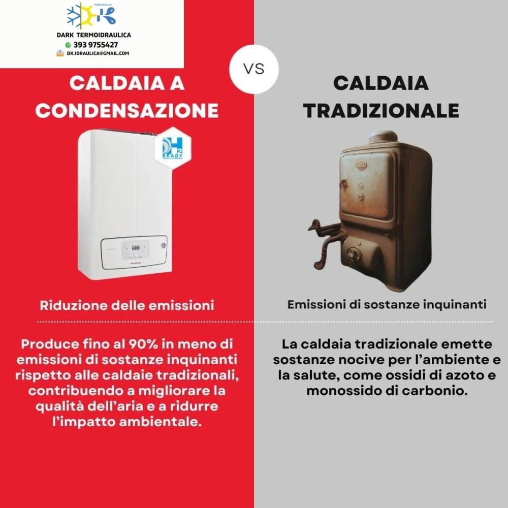 Riduzione delle emissioni: produce fino al 90% in meno di emissioni a sostanze inquinanti rispetto alle caldaia tradizionali, contribuendo cosi a migliorare la qualità dell'aria e a ridurre l'impatto ambientale. Le caldaie tradizionali, invece, emettono sostanze nocive per l'ambiente e per la salute, come ossidi di azoto e monossido di carbonio.
