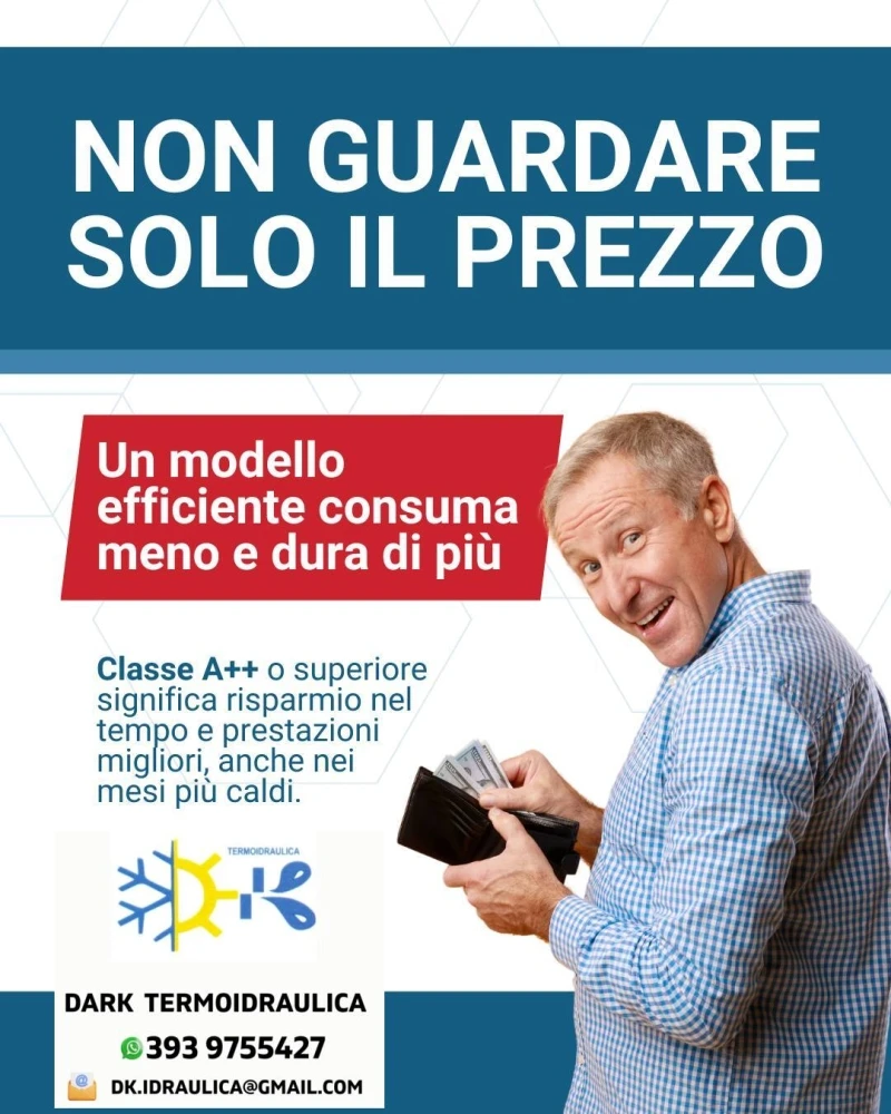 - Non guardare il prezzo: un modello efficiente consuma meno e dura di più; classe energetica A o superiore significa risparmio nel tempo e prestazioni migliori, anche nei mesi caldi;