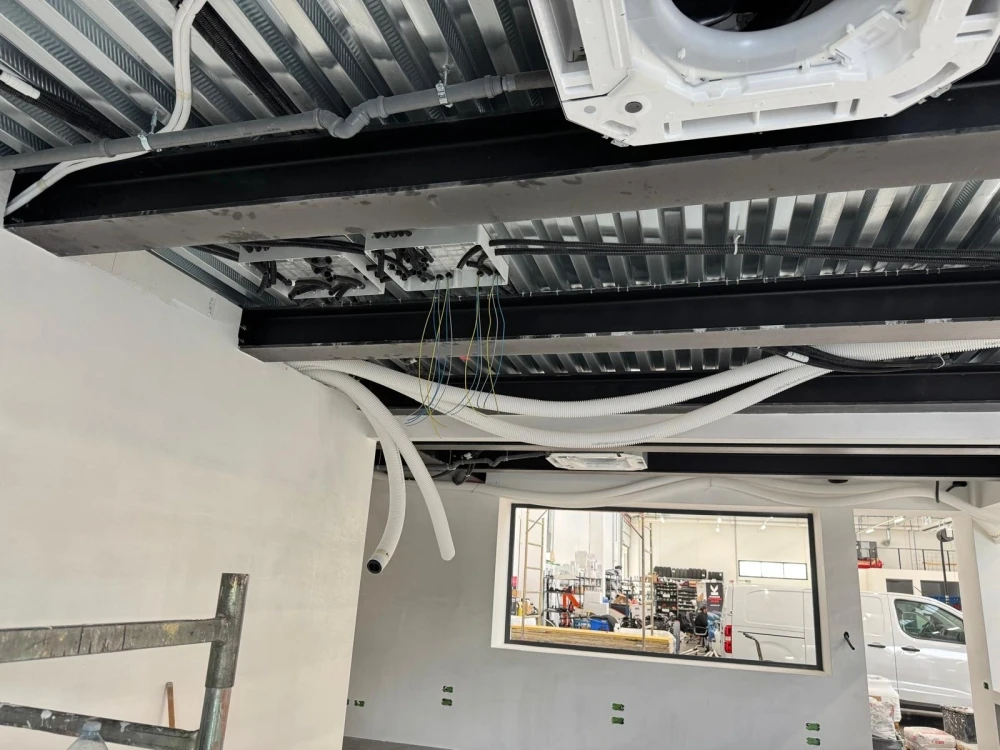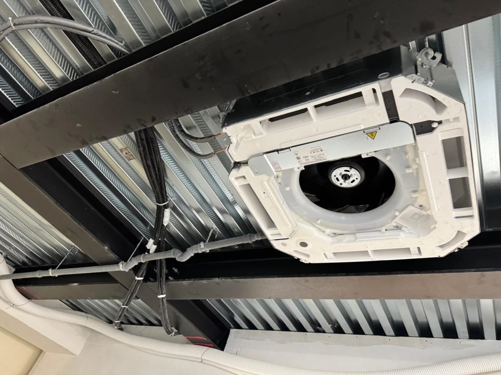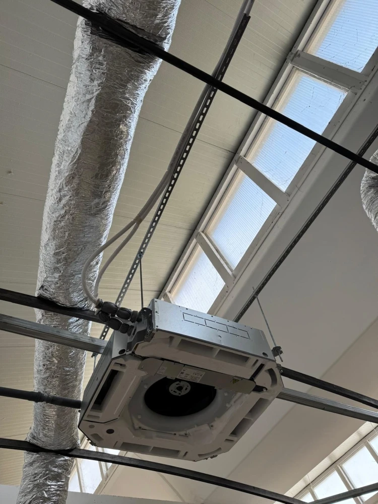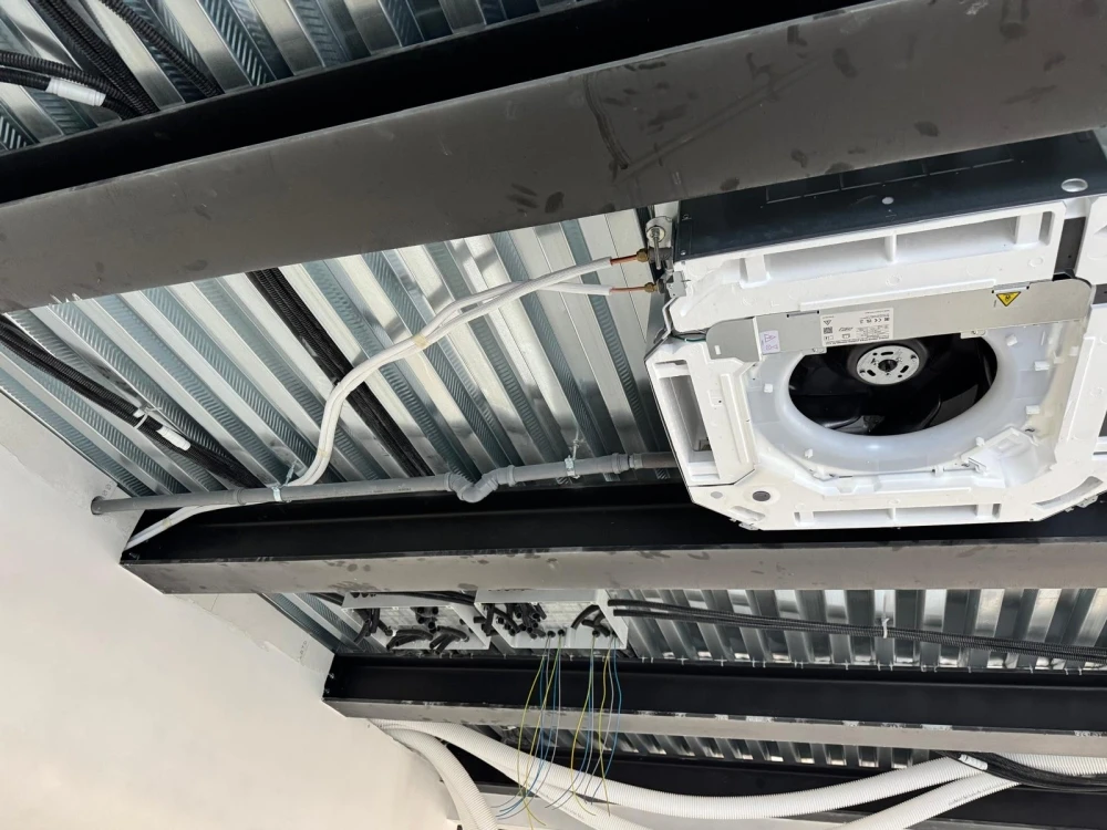 Realizzazione impianto di condizionamento con unità interne Daikin da controsoffitto Roundflow inverter con pompa di calore e refrigerante ecologico r32